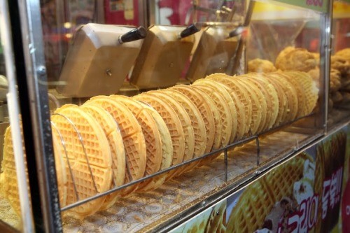 Tương tự như châu Âu và Mỹ, Hàn Quốc cũng ưa chuộng hương vị của bánh xốp. Waffle thường được phủ với mật ong hoặc mứt táo và bơ.